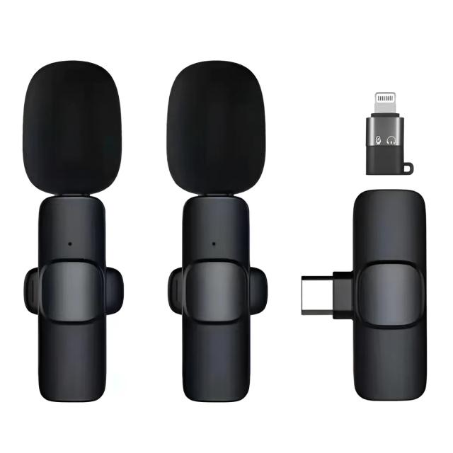 Incluye: 2 micrófono, un receptor USB-C, 1 adaptador a Lightning y un cable para cargar el micrófono.