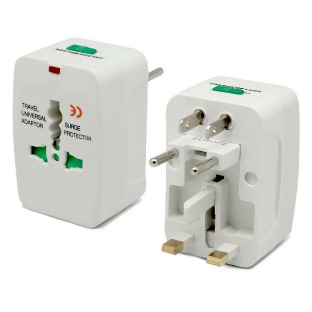 - Ficha universal. - Ideal para viajes, cuenta con toma universal al frente. - Compatible en más de 150 países. - Funciona entre 125 y 250 volt. - Compacto y simple. - Con funda de tela. - Luz indicadora de uso.